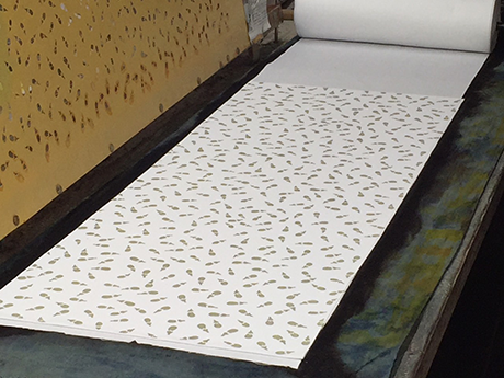 折り畳みながら糊付けされた反物は広げると90~100㎝ほどで柄が繰り返されることになります。